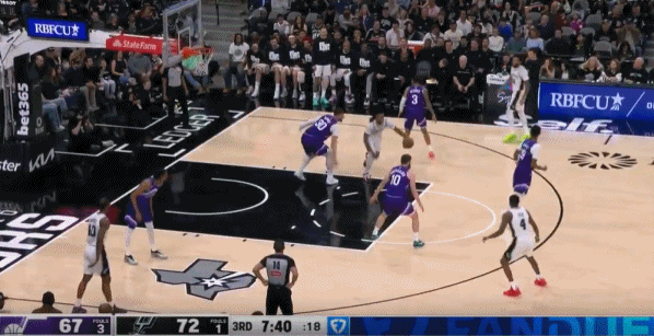 进入第三节比赛后,文班亚马减少了出手,单节仅有4投2中拿到5分,其中他命中了个人第6记三分,此外还有一次篮下强打命中。末节比赛,文班亚马连续造成杀伤命中罚球,并在左侧45度再次三分命中,顶住了爵士队的反扑,最终在主场带队取得一场大胜!