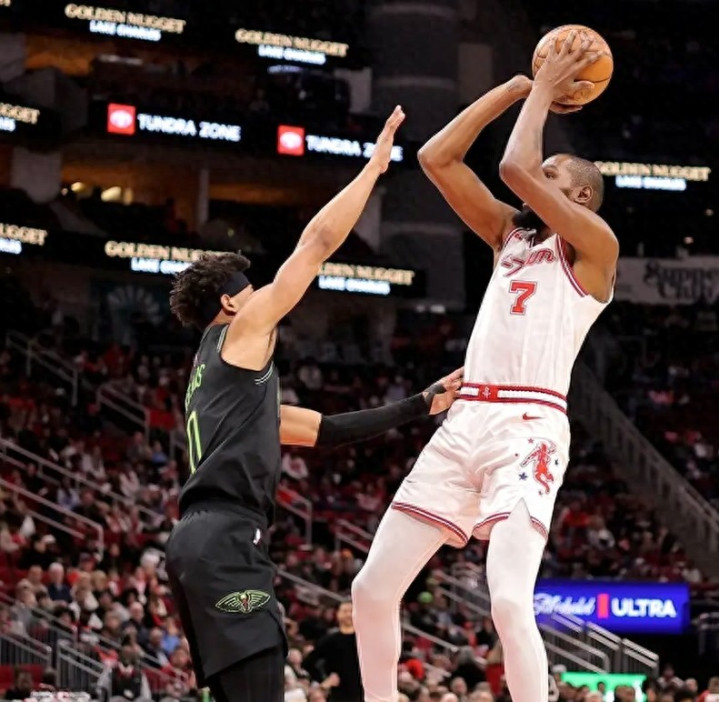 第三节比赛彻底进入拉锯战,鹈鹕的墨菲三世也开启暴走模式,单节贡献12分,带领球队打出10-2的反击波,把分差缩小到5分。这时候就能看出杜兰特的价值了,虽然他本场手感不佳,18投仅5中,三分8中1,命中率低到让人着急,但关键时刻他从不掉链子。先是两罚全中稳住局势,随后又连续送出精妙助攻,帮申京完成暴扣,给阿门创造上篮机会,硬生生把鹈鹕的势头压了下去。三节战罢,火箭87-80领先7分,而杜兰特的得分也悄悄来到18分,正式超越诺维茨基的31560分,升至NBA历史得分榜第六位!