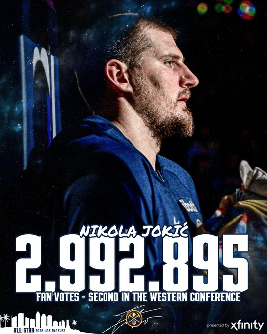 虎扑01月20日讯掘金更新官方社媒,恭喜约基奇入选今年全明星。
