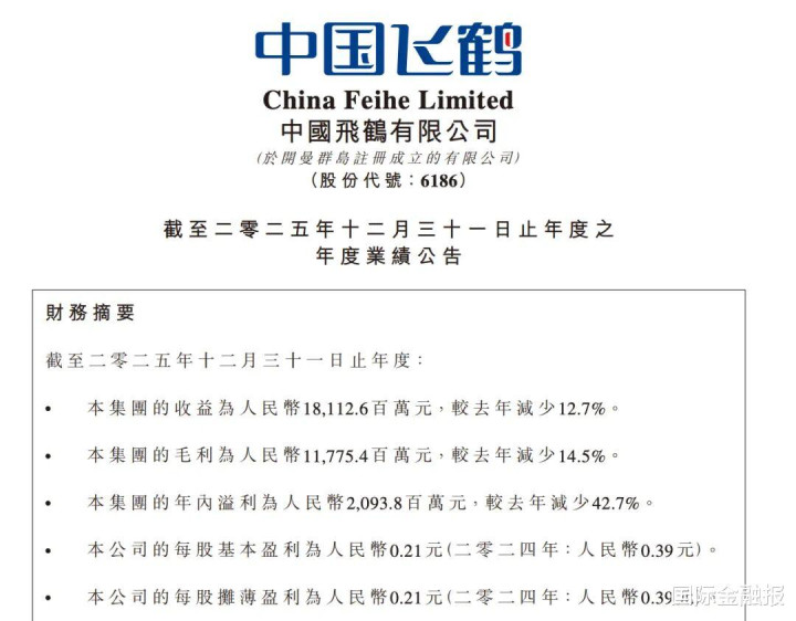 3月26日晚间,中国飞鹤(06186.HK)发布2025年财报。