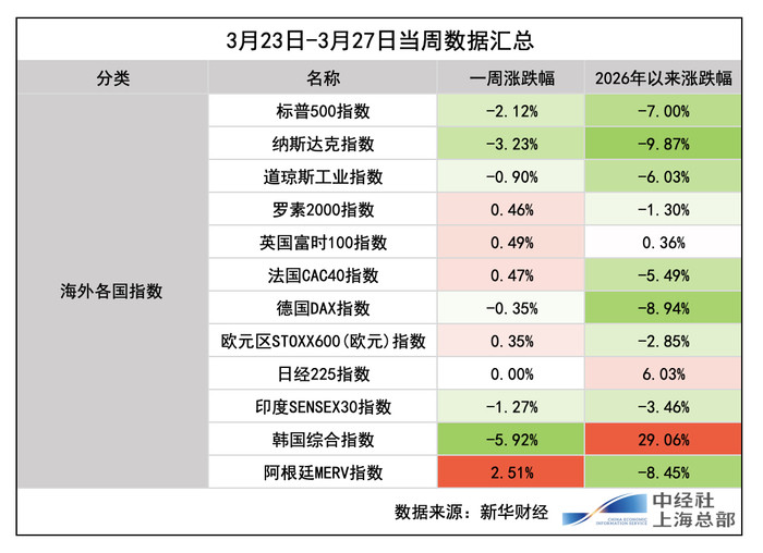 好意思股方面,标普500指数收报6368.85点,本周累跌2.12%;谈琼斯工业平均指数收报45166.64点,本周累跌0.90%;纳指收报20948.357点,本周累跌3.23%;罗素2000指数收报2449.7点,本周累计涨0.46%;着急指数VIX收报31.05。