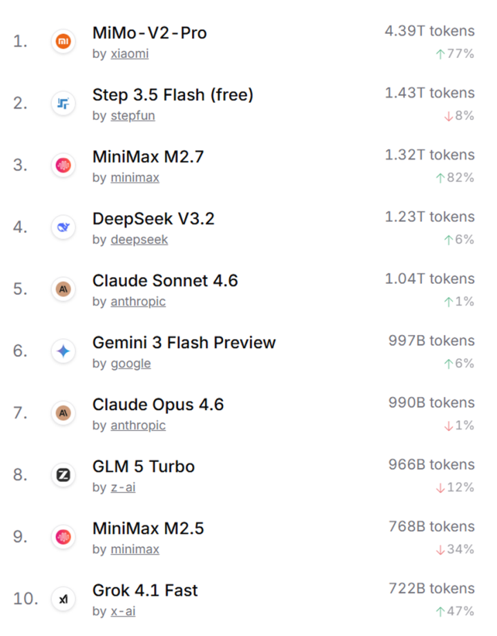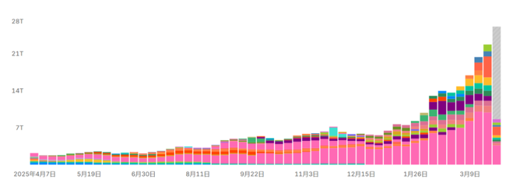 事实上,AI本领的迭代周期不错按月计较,而模子智商界限的擢升,亦然AI大模子“力大砖飞”的推崇。把柄OpenRouter网站统计,三月份终末一周tokens使用量为22.7万亿,较2026年第一周增长超三倍。