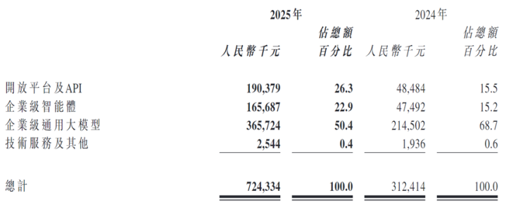 从收入结构来看,企业级通用大模子也曾智谱的“压舱石”。2025年该业求已毕收入3.66亿元,占举座收入的比重阑珊50%,同比增长70.5%。