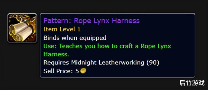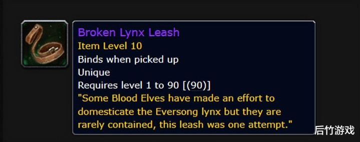 值得一提的是,除了配方自身,制作坐骑的要津材料“损坏的山猫牵引绳”(Broken Lynx Leash)也为当场掉落,而况拾取绑定。这也意味着即便交付制作,也要我方去刷材料。