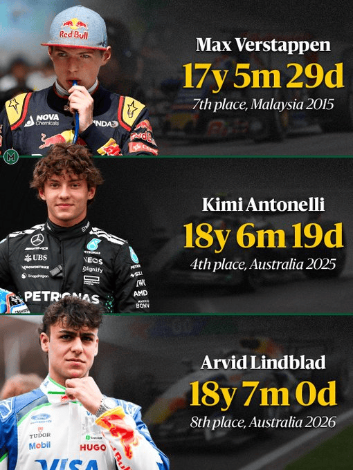 阿尔维德-林德布拉德:18岁7个月——2026年澳大利亚大奖赛第8名
