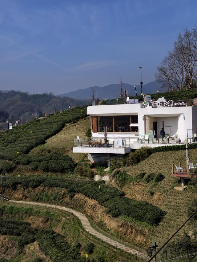 桥的那头,是网上正走红的“岸香·抹么茶”村咖,依山面水,正对鲜花湖,在漫天盖地的翠绿中,咖啡馆白色的外墙显得极端白皙。咖啡馆有全景落地窗,坐在室内,可不雅天境、揽湖光、眺茶山……湖边的栈谈、山腰的亭台、水中的划子、凌空的吊桥、探春的搭客,时时入窗来,就成了一幅幅流动的粉彩画。室外,则有屋顶和环绕四周的露台,更有重重叠叠直至谷底湖边、洒落在茶垄中的茶寮咖吧,让游东谈主与这春色茶香如鱼似水。更可喜的是咖啡馆融入了六安“茶”元素,在咖啡中加入“六安瓜片”,调制成“瓜片拿铁”,甘醇的茶韵和浓郁的咖香长入,诱骗年青搭客的同期又实施六安茶文化。