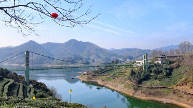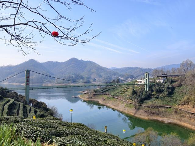 茶海湖光,步步是景,同伴们拍照录像,乐得迈不开步。走走停停,前线山谷中,突现一座绿色吊桥,横跨两山之间,悬浮于绿水之上。行走在桥上,东谈主随桥、桥随风微微晃悠,有惊却无险。桥头建有高台,登临四顾群山层峦叠翠之际,也可居高拍摄,让东谈主与茶谷仙桥、春山绿水同框。