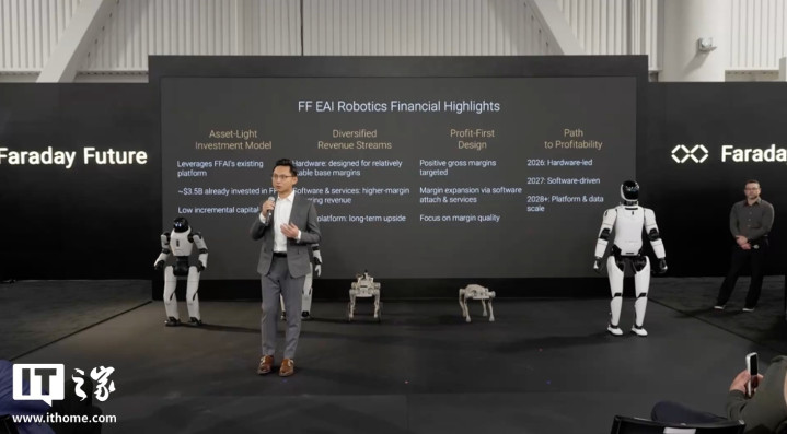 IT之家2月5日消息,法拉第未来今天举办美国国家汽车经销商大会(NADA),活动中法拉第未来公布了旗下首批具身智能机器人产品。