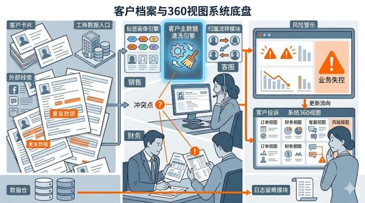 客户档案与360视图最容易被低估,因为它看起来不像订单、弯曲、结算那样“径直创造收入”。但从永久看,它决定了企业能不行: