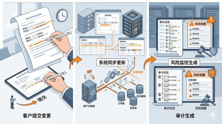以“客户变更注册地址和开票昂首”为例,要是系统能力不及,后果频频不是单点问题,而是连锁失实: