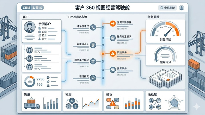 许多货代企业口中的“客户不竭”,推行上照旧柬帖夹、Excel和聊天记载的组装版。客户称号肖似、干系东说念主漫衍、偏好只在销售脑子里、财务风险要出事了才被看见,最终导致客户明明许多,信得过能复用的数据财富却很少。本文从产物假想视角拆解“客户档案与360视图”模块:如何把客户主数据作念干净、如何把业务与财务风险团员到一屏、如何让公海私海流转可治理,以及哪些能力能信得过复古销售、客服与不竭层有策动。