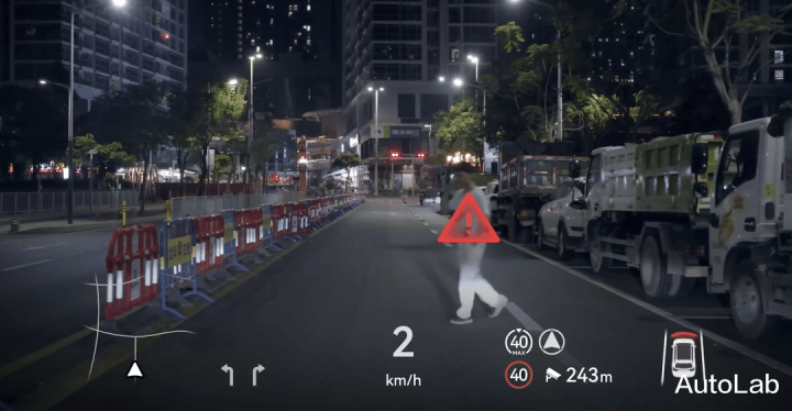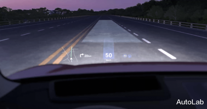 它把内容直接投在前挡风玻璃上,但前挡风玻璃需要经过特殊处理,否则就会容易有重影,看起来非常不舒服。