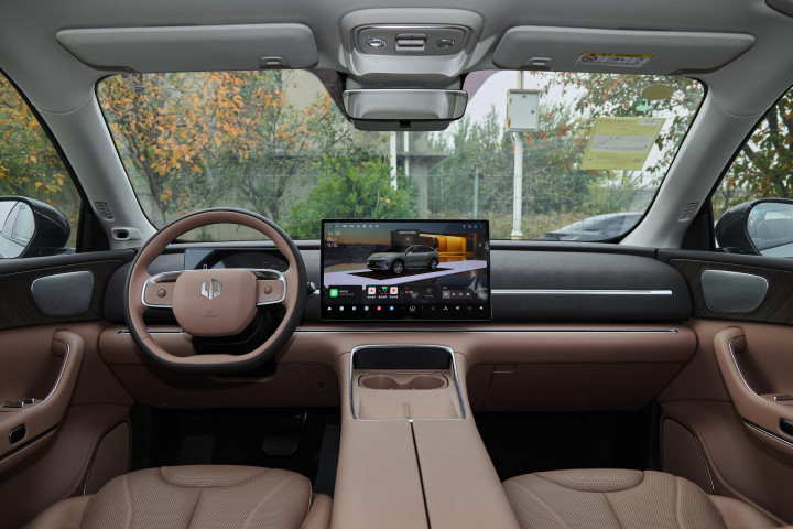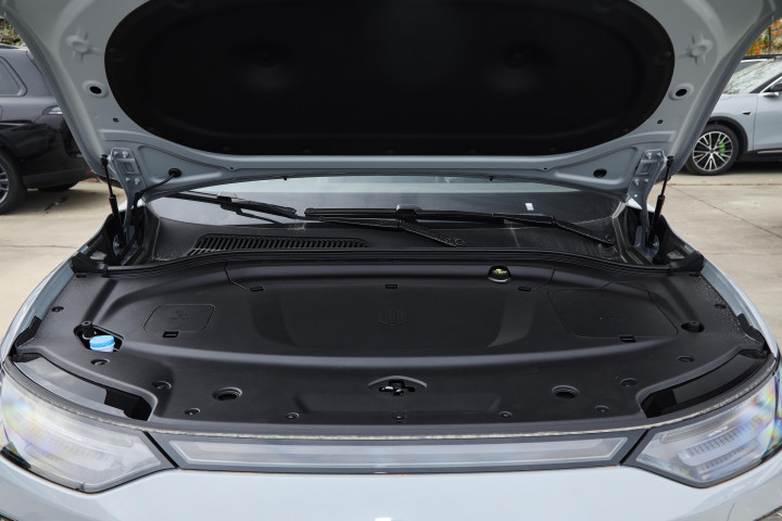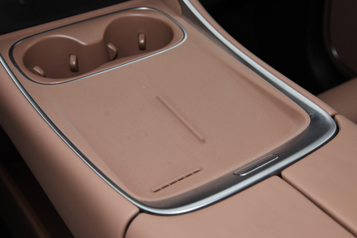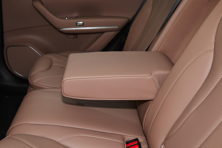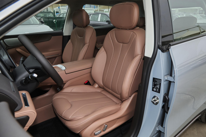 外表“稳中带潮”,内部空间同样有料。以身高185cm乘员为例,前排头部空间获一拳有余,纵向腿部空间达到两拳,座椅宽厚支撑感强,主驾驶支持电动多向调节,采用仿皮包覆且触感细腻。后排得益于平整地台,腿部剩余空间大致在两拳以上,头部一拳一指左右,长途乘坐不易压抑。后排座椅靠背支持角度调节,后排配有中央扶手及后排空调出风口,整体空间舒适性较高。后备厢常规容积410L,扩展后能达974L,同时后排座椅放倒后装载更大件物品也无障碍。值得一提的是,行李舱还设有12V电源接口,方便为户外设备供电,适合偶尔自驾出行的家庭,体现了一定的实用细节。