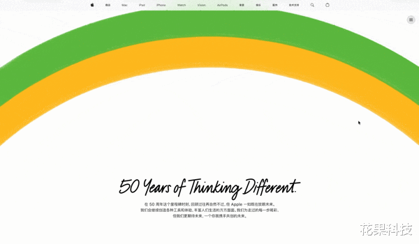 今天苹果在官网上线了 50 周年彩蛋,翻开苹果官网首页就会看到,通过彩色简笔画勾画出了苹果各式软硬件居品。
